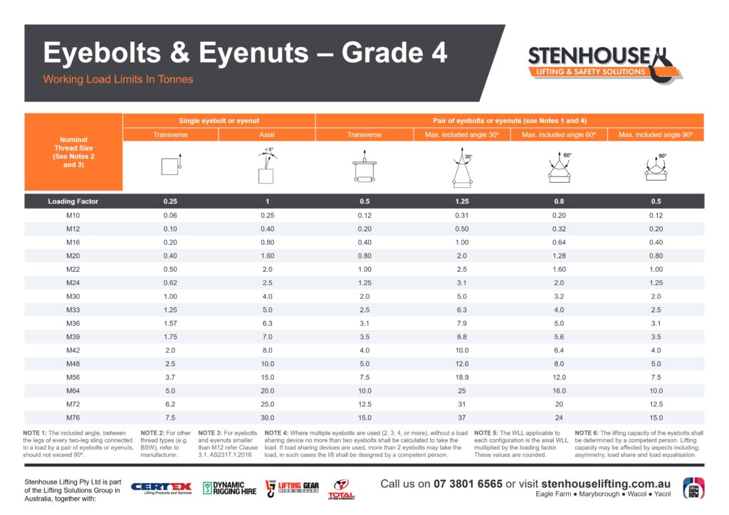 Eyebolts & Eyenuts - Grade 4 Load Chart